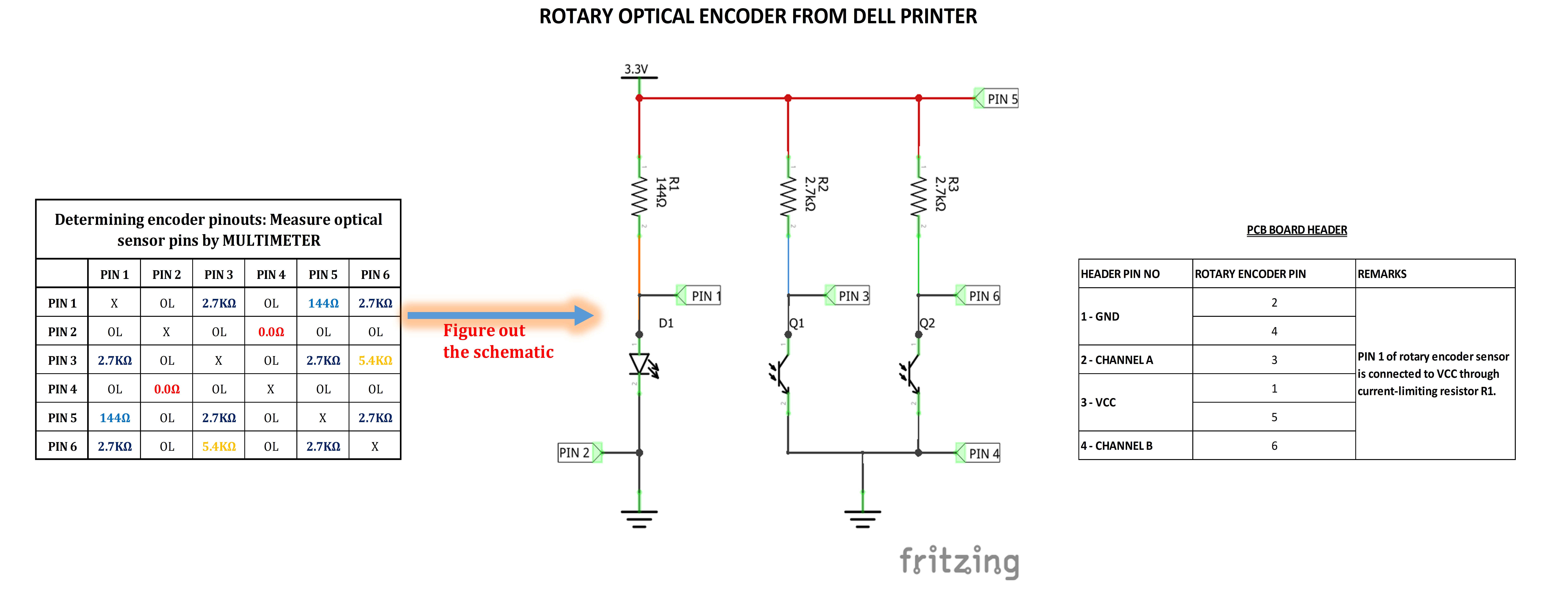 DETERMINING OPTICAL ENCODERS PINOUTS IN THE PRINTER