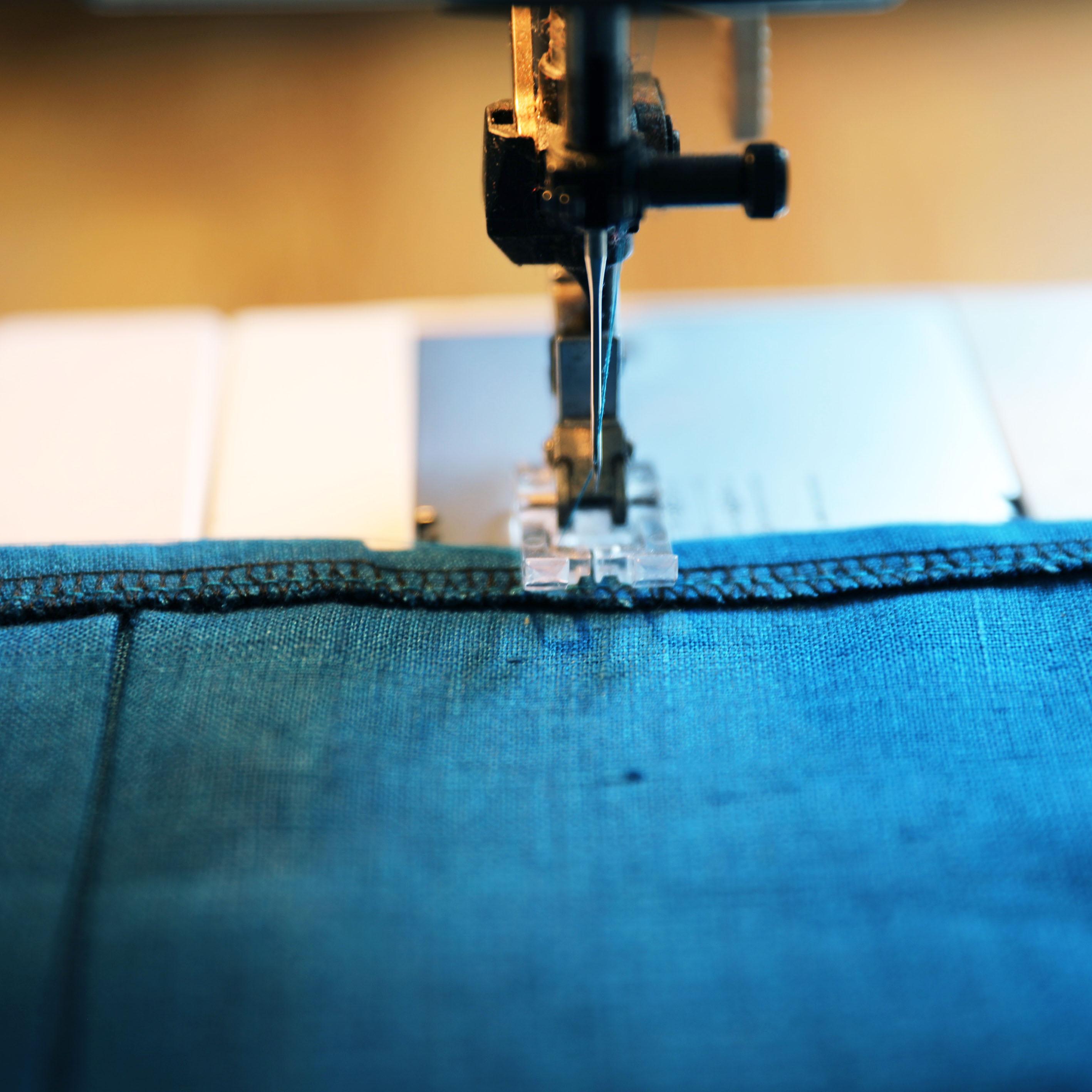 Once the layers are stacked, iron on each side. Make sure the layers are well stacked. Sew the layers together with an overlook sewing machine or with a domestic sewing machine using a zigzag stitch to lock the fabric. Sew all 4 sides.