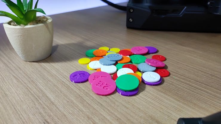 The coin separator project presented satisfactory results during its operation. To simulate the project, pieces with dimensions identical to European coins were selected. Below we have a representation of the coins that represent each value with different colors.