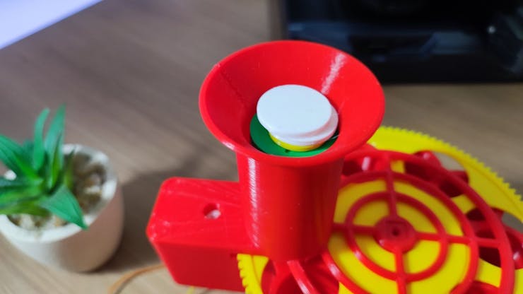 Next, see the rotational movement of the larger gear carrying out the process with several coins.