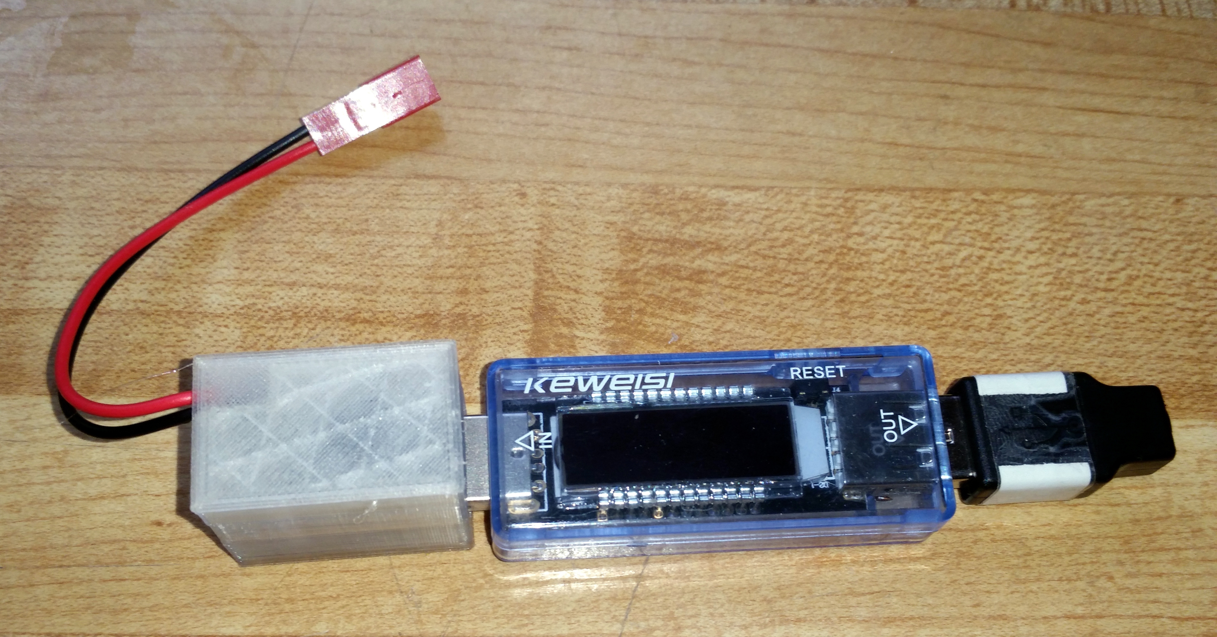 Now all that needs to be done is plug the USB power meter into the USB converter, plug the "load" into the meter, and you're done!