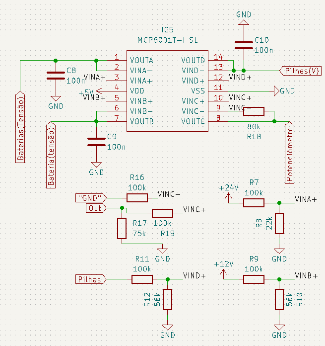 The voltage provided by the 12V batteries is too high for the Arduino, as the maximum voltage that can be supplied to the micro controller is 5V, so the use of an operational amplifier is necessary. To determine the potentiometer percentage, the operational amplifier is also used.
