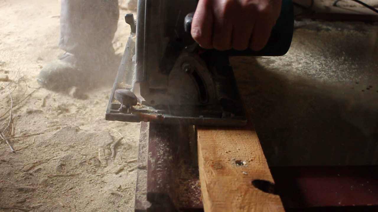 TIP: (photo above) Screw a plank of the appropriate thickness to the face of the window so as to ensure that the saw blade will cut a square face to the bottom of the window.