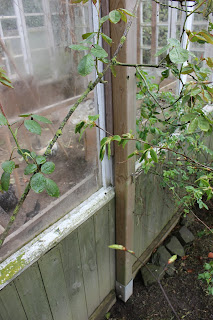 For the south end I had recuperated some French windows and these and the entrance door on the North end set the wall height of the greenhouse.
