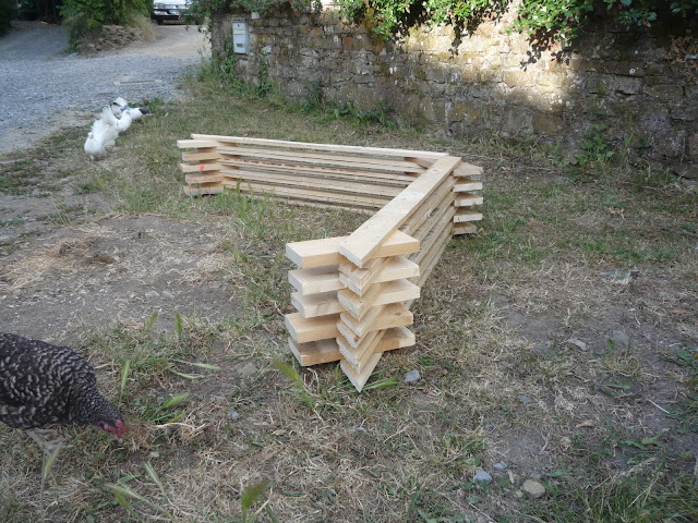 To bring the windows' heights to that of the French windows I decided to support them on walls made from pallet wood. Now that I knew the wall lengths I could sort the windows to fit, number them and mark their position on a plan.