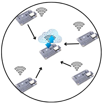 But how do we get the sensor readings from non-router devices to the router device? With ESP32 we could use Wi-Fi to create an access point on the router device and connect all non-router devices to the router device.