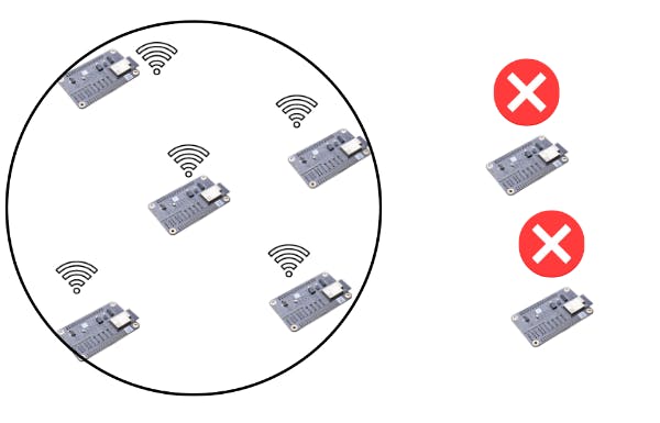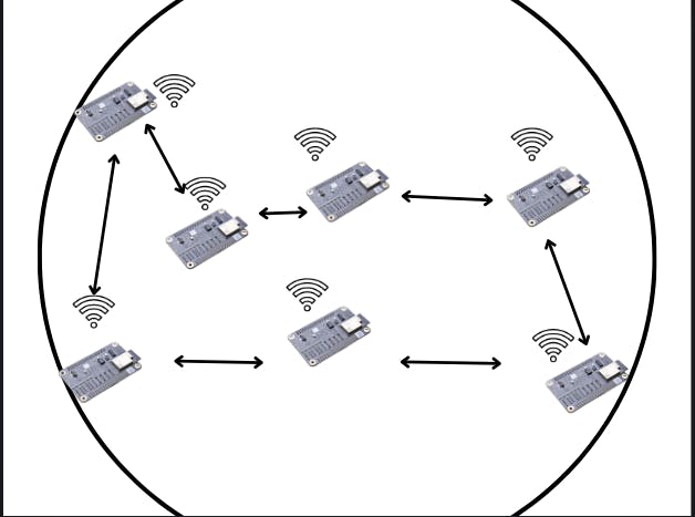 To solve this problem I created a mesh network consisting of the router device and the non-router devices. A mesh network allows devices to communicate with each other directly, without needing to rely solely on a central hub or router. In this setup, each device acts as both a transmitter and a receiver, forwarding data from one device to another. This effectively extends the range of the network, as each device helps relay information across the network. In our case, the router device can collect temperature readings from non-router devices even if they are far apart because the data hops between devices until it reaches the router device.