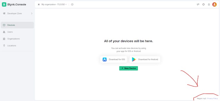 Please take note of the region code we will need it in Notehub. Let’s leave Blynk Console for now and move to Notehub