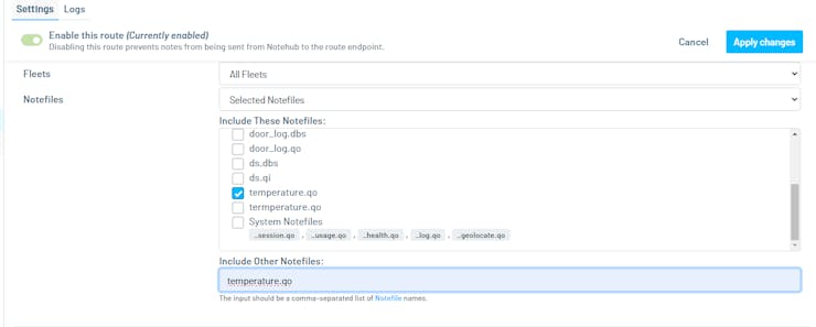 Then click Apply Changes. It takes a while (less than a minute) for the Notecard to get updated, once updated you should be able to see something like this below when the next temperature readings are sent.