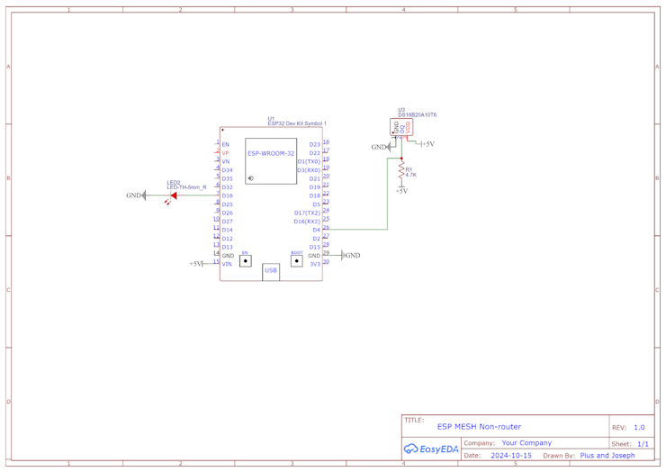 The Non-router is an ESP32 connected to a DS18B20 temperature sensor. Connect the temperature sensor to the ESP32 according to the schematic diagram below: