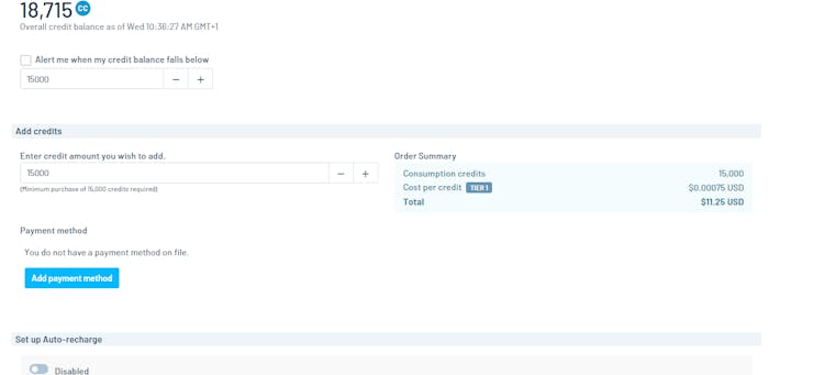 For the first iteration of this project, I was constantly streaming. See how many credits I used.