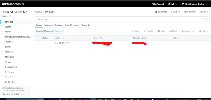 After uploading the codes to the devices, go to Notehub you should see your device in the Devices section.
