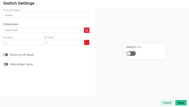 Click the X icon at the top of the screen when done. Repeat it for other labels. Recall each label represents a datastream and each data stream represents a device on our mesh network. So if you have 20 devices, you should have 20 datastreams (+ 1 datastream for the refresh button) and 20 Labels.