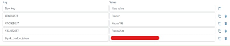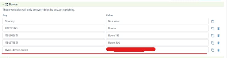 If it was successful you should see your Blynk device token in the Environmental variables of your device.