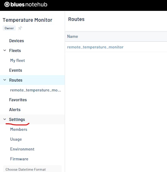 Routes are defined in Notehub for a Project and can target Notes from one or more Fleets or all Devices. A Project can have multiple routes defined and active at any one time. For our project, we will create a Blynk route on Blues to route a note containing our temperature readings to Blynk’s server.