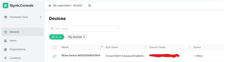 Your device must show up on the Notehub before you move on to the next step, skipping this could cause some communications problems with Blynk. If you are having an issue with this check the debugging section at the end of this article.