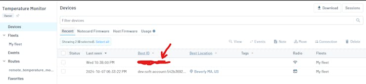 So I used the environmental variables such that all Non-router devices send their temperature readings to the Router device, and the Router device tells each Non-router device apart based on their ID. Before it uploads the temperature readings to Notehub it first checks if check the environmental variables to see if the ID has a corresponding name; if yes it will send the temperature reading with the device name to Notehub, else it sends with just the ID.
