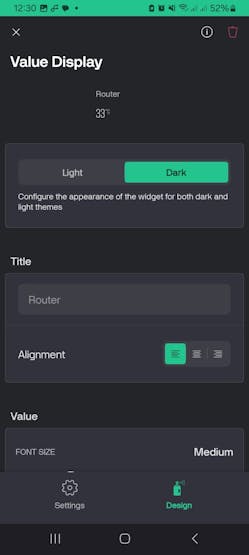 click on your device, and add the required widgets: the labels and a button for refresh. To add the label widget click on the plus icon at the bottom of the screen