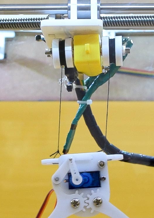 Attach thread on the top plate of the gripper and the other end to the pulley as shown in the figure.