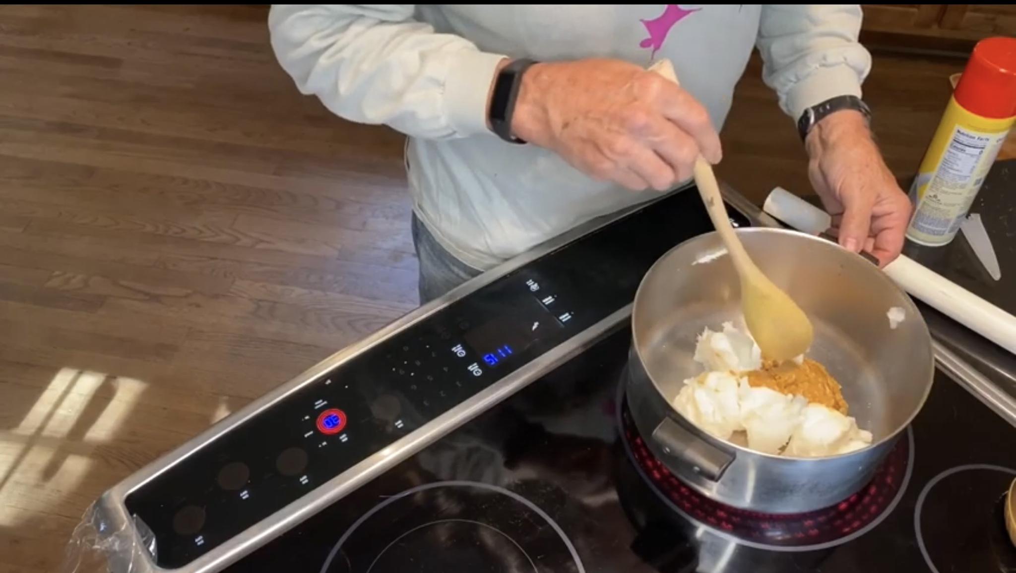 Start by melting the lard and the peanut butter on medium low heat. Do not boil.