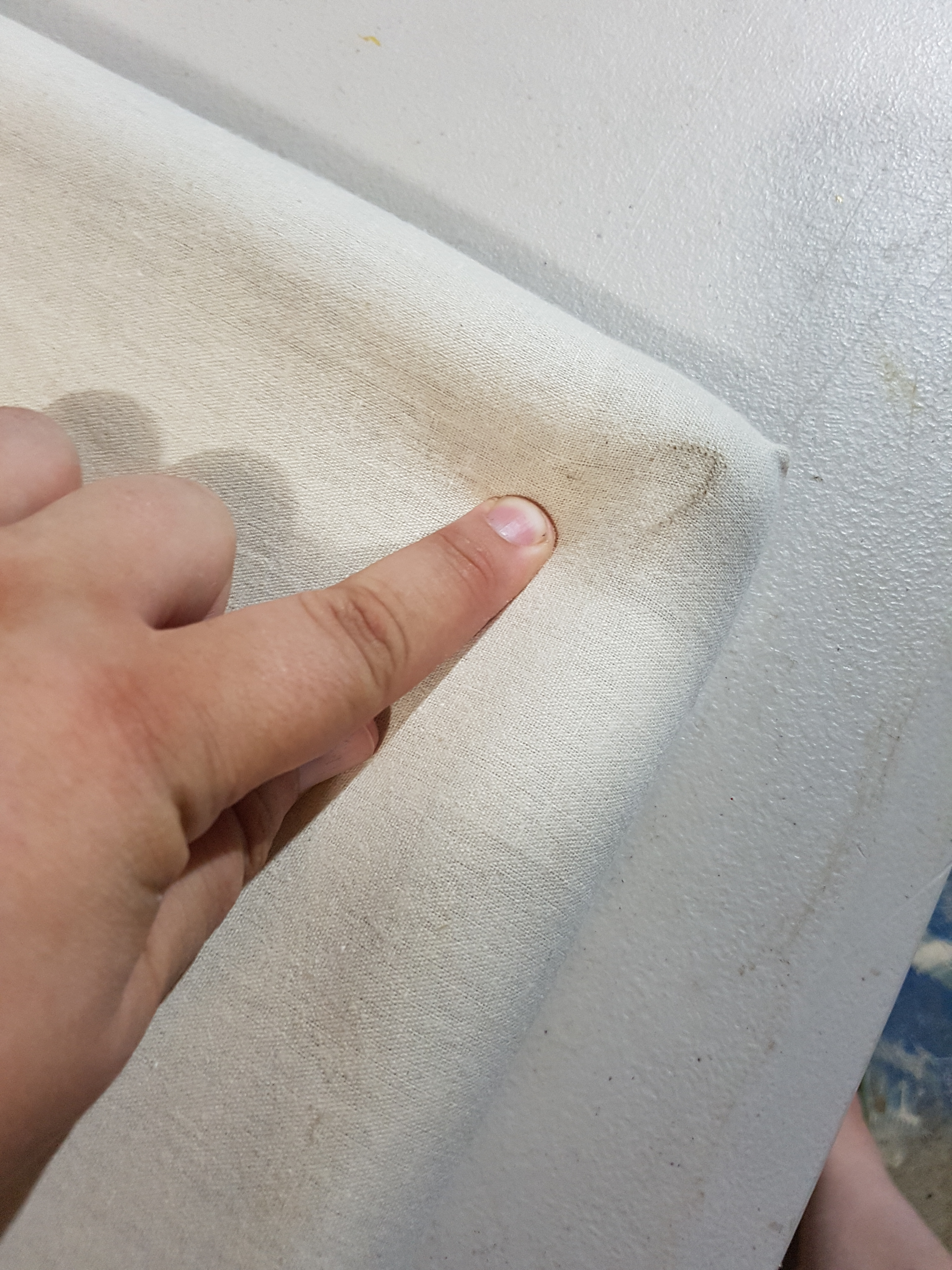 - If you're a bit of a masochist, you can fold that fabric under itself a few times, and then staple it down to get a really clean finished look, but the corners will be a nightmare.