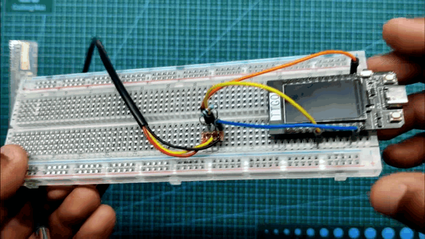 Next, we add the main code to the TTGO Board and the sensor will start working and will display TEMP Data on the TTGO's Screen.