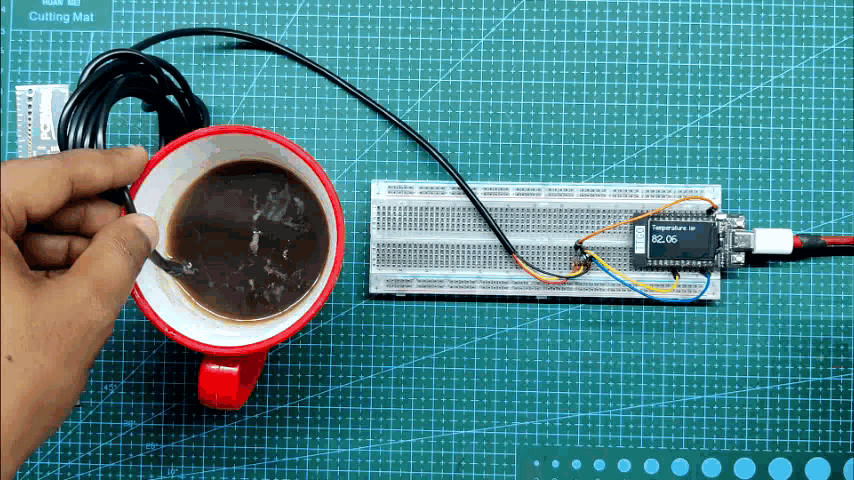 After Uploading the sketch, we test this Temperature Sensor setup by using two mediums like ICE and HOT Coffee.