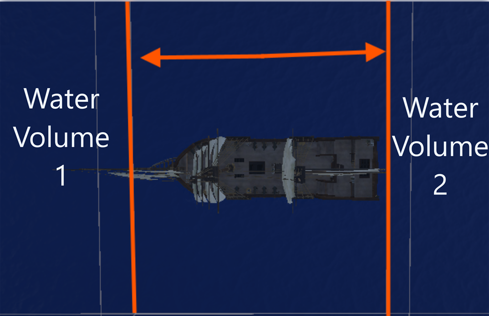 If you would like to create more than one water body, duplicate the WaterVolume element or the water's parent element. Make sure that when placing them, the overlap space is a bit bigger than the ship's body, or the ship will sink when crossing the border.