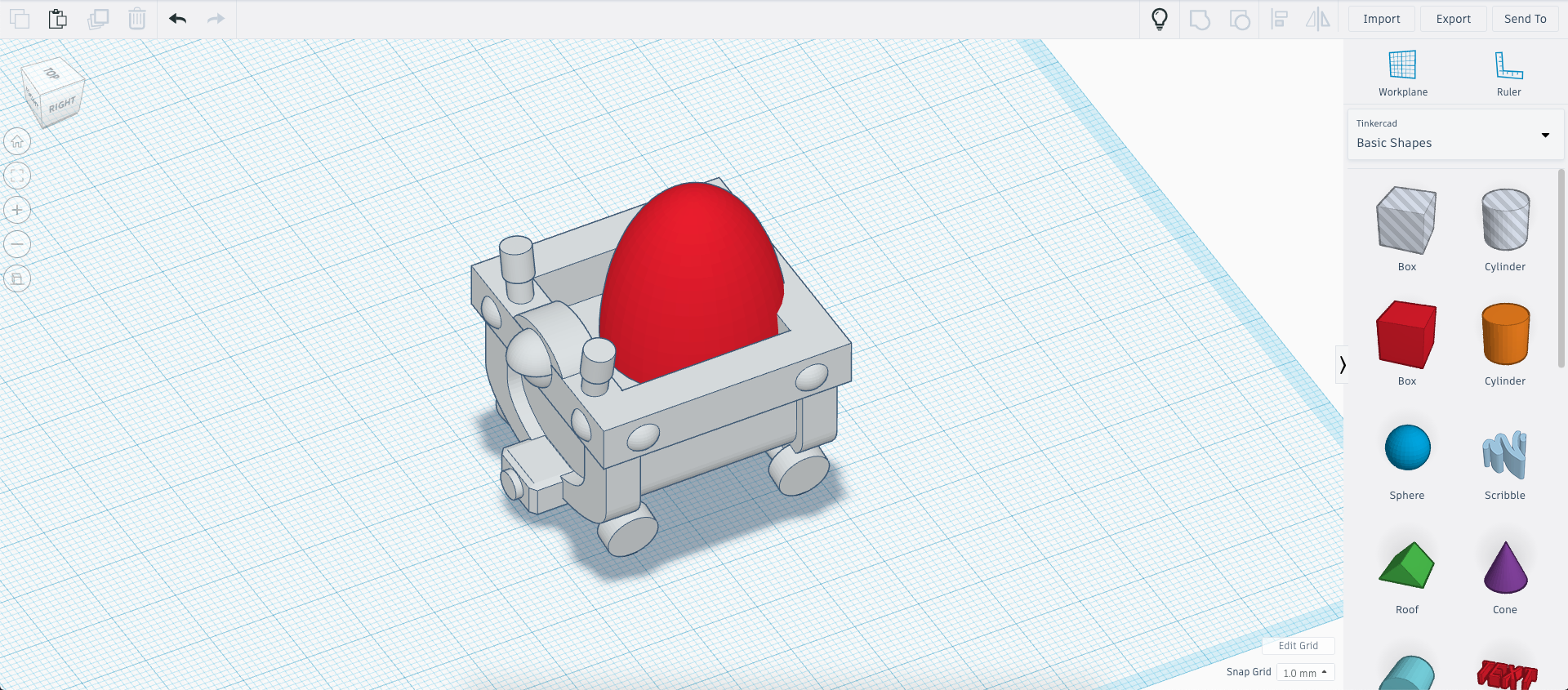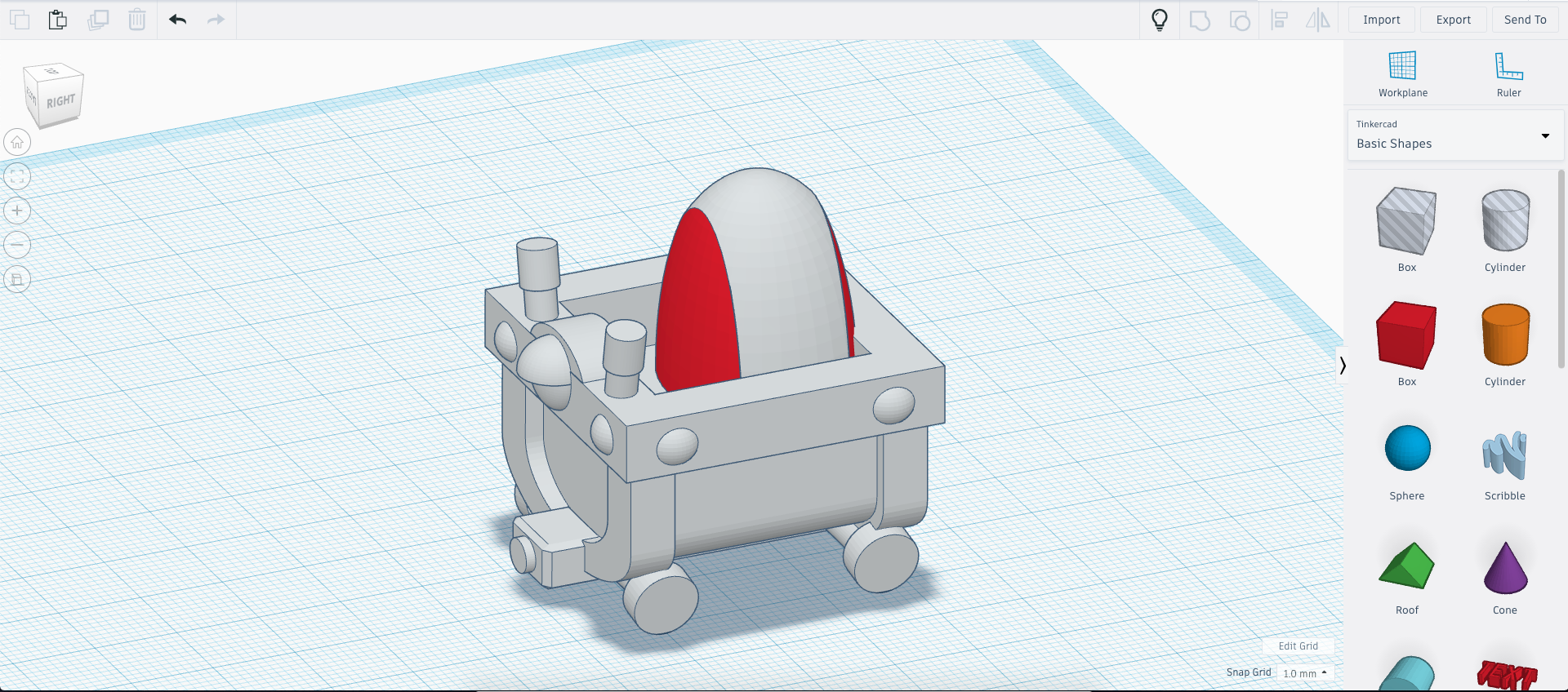 Add a box and a rounded roof to form the bouncy ball storage unit.