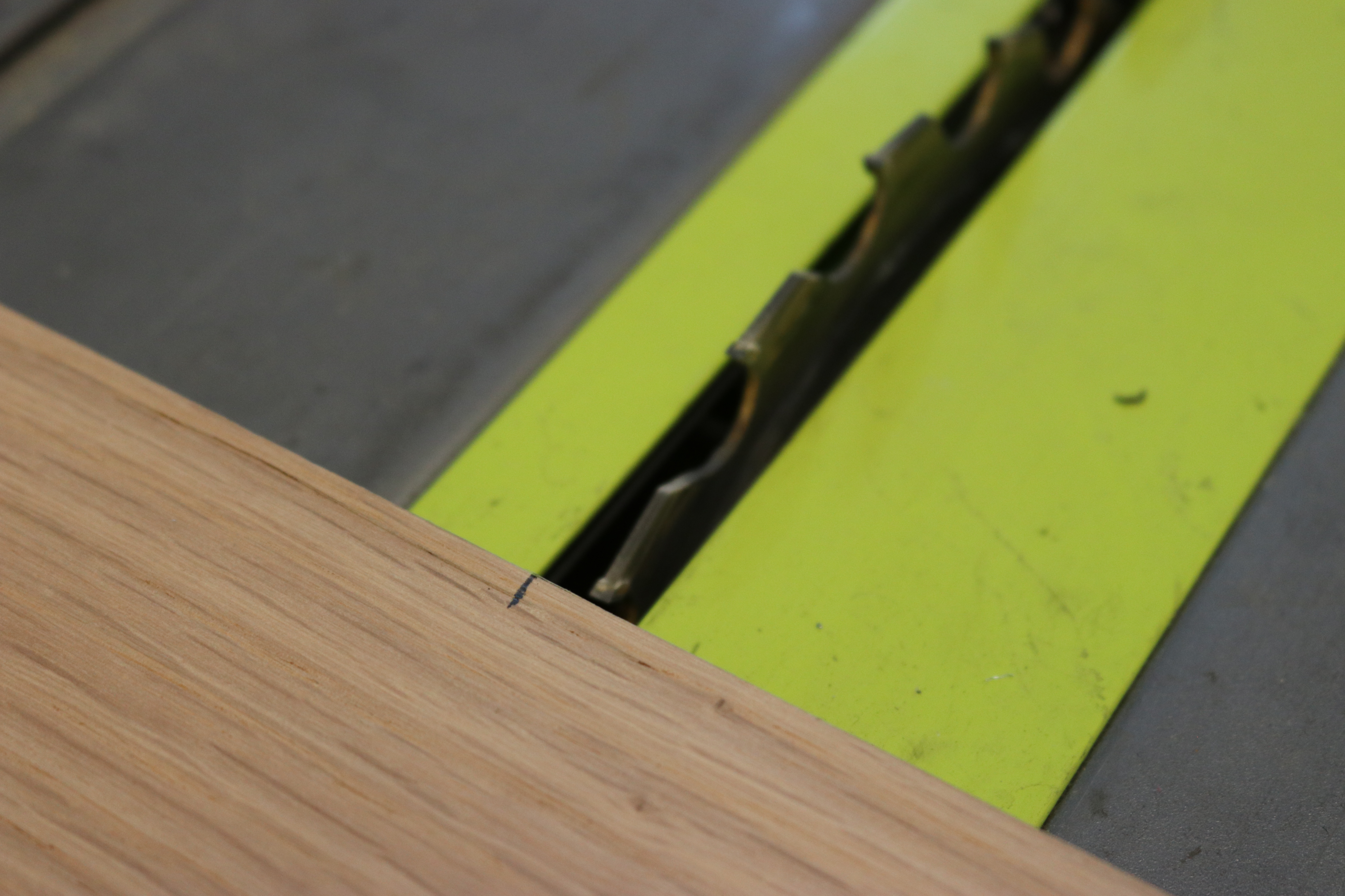 Let's get cutting. I recommend using push sticks. With every pass you'll raise the blade 1/4 turn. This will remove about 1/16" of material every time. Make sure you keep constant even pressure both against the guide and table. If not, the blade will try and push the wood toward you; ruining your cut. Every time you raise the blade, more and more material will be removed per pass. This means the rate in which you feed in will slow down.