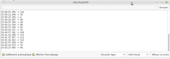 Be sure to change the Serial.print(cpm) command to Serial.println(cpm) in the void loop(){} for better readability.