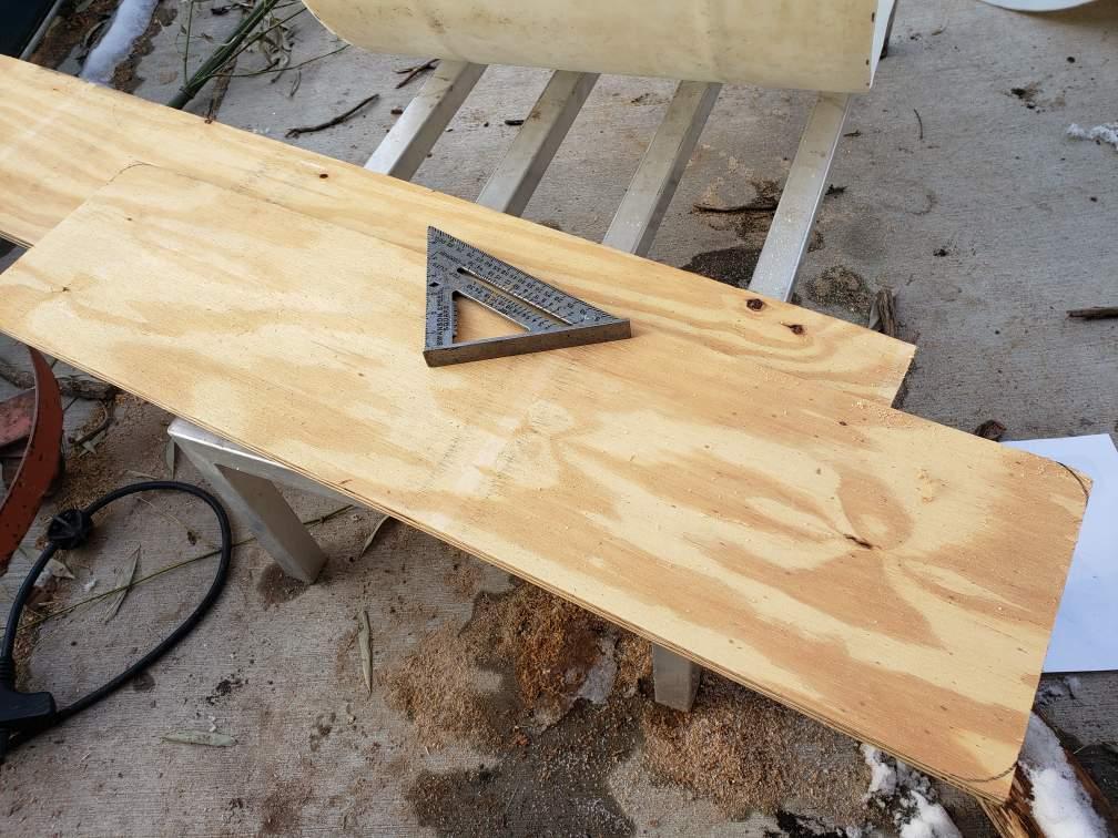 I thought of heating it up and trying to get it to take a set to this shape but it was below freezing and I figured I didn’t have enough heat to come close. So, I cut some plywood for a frame to keep the plastic flat. The piece i cut was about 18'' x 40'' and 3/4'' exterior ply because that's what i had.