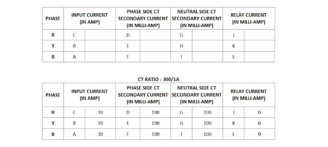 - For CT of 300/1A ratio, CT secondary current will be 100mAmp in both sides of CT's and current through relay will be 0Amp.
