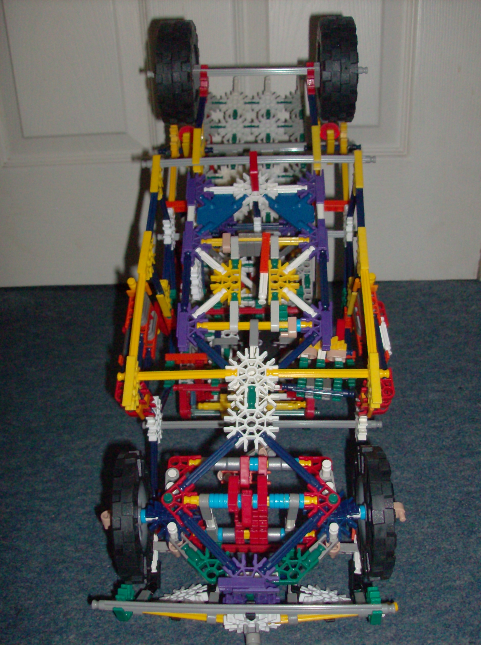 Hi this is my creation of a top gear car challenge. Mine has steering on the top car/helecopter and a opening door at the top as well as 2 main doors on the car . It does'nt have a trunk because it would not open right and if you put anything in , it has no where to hold the item. A slight problem with the steering routing caused me to make the steering again but it only works when forced . The cars are very heavy and this made me take out the suspension. Eventhough it has big spaces around the rear of the top car/helecopter , It can hold a lot of stuff without anything falling out. Modifications have made it possible for knex men to fit on the seats on both models. Please vote and follow me . If you have a 3DS or 3DS XL I am happy to trade friend codes.