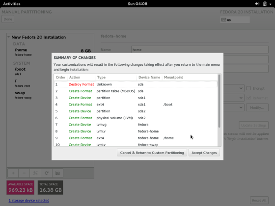 5. Fedora install