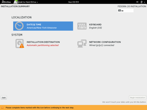 4. Fedora net install setup