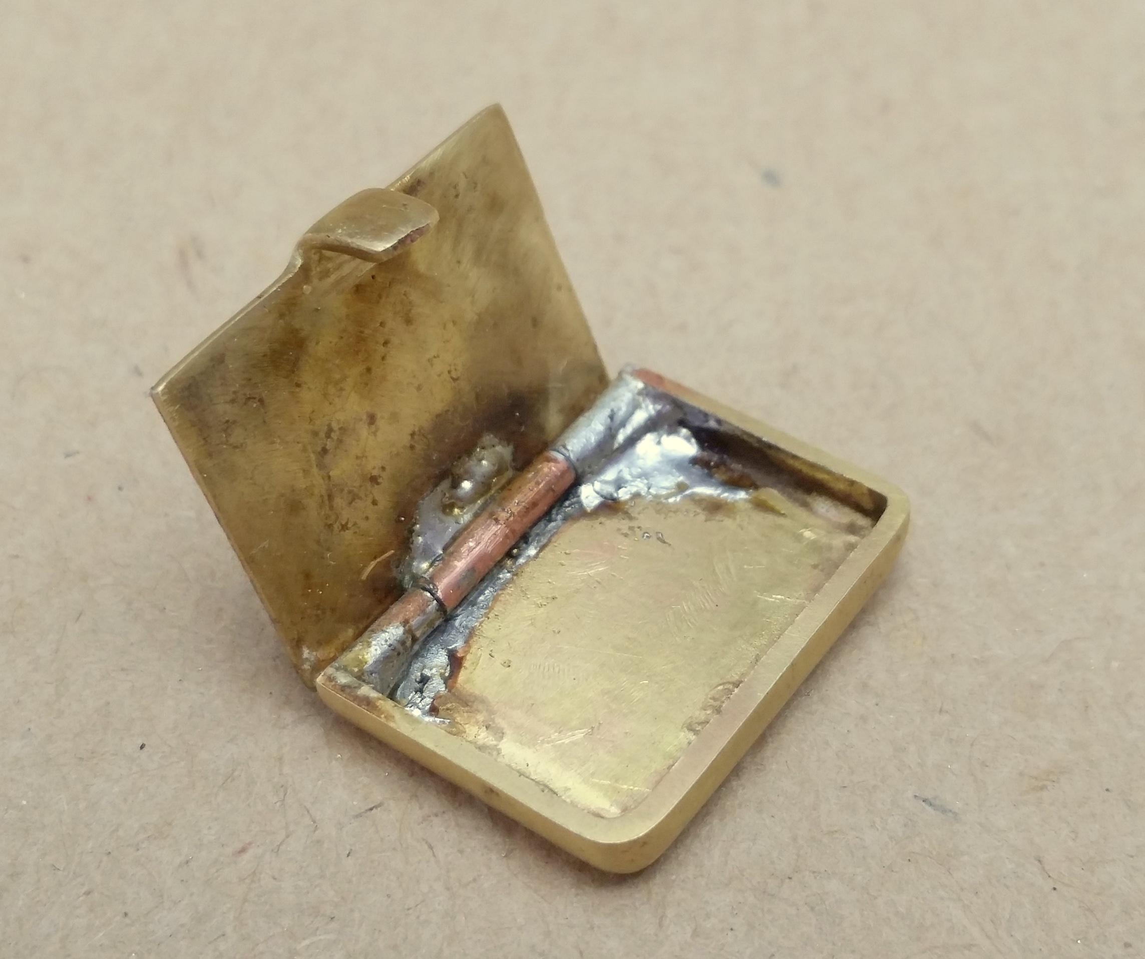 Now for a tricky part, we need to solder on our hinge and lid. It's small and everything could end up fused together if too much solder is applied.