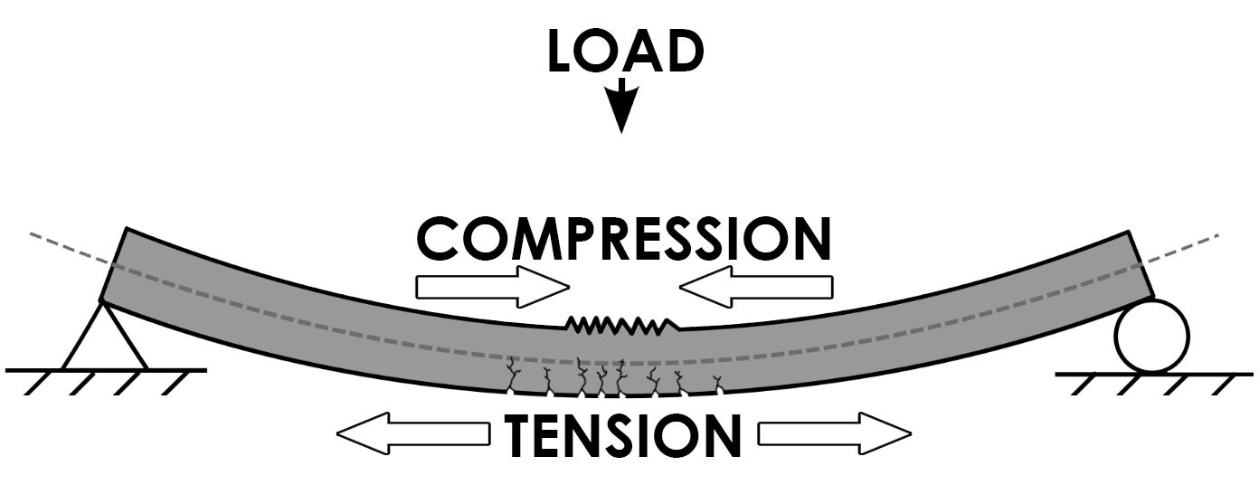 Compression and tension forces on a beam. Image modified and used under CC BY-SA 3.0