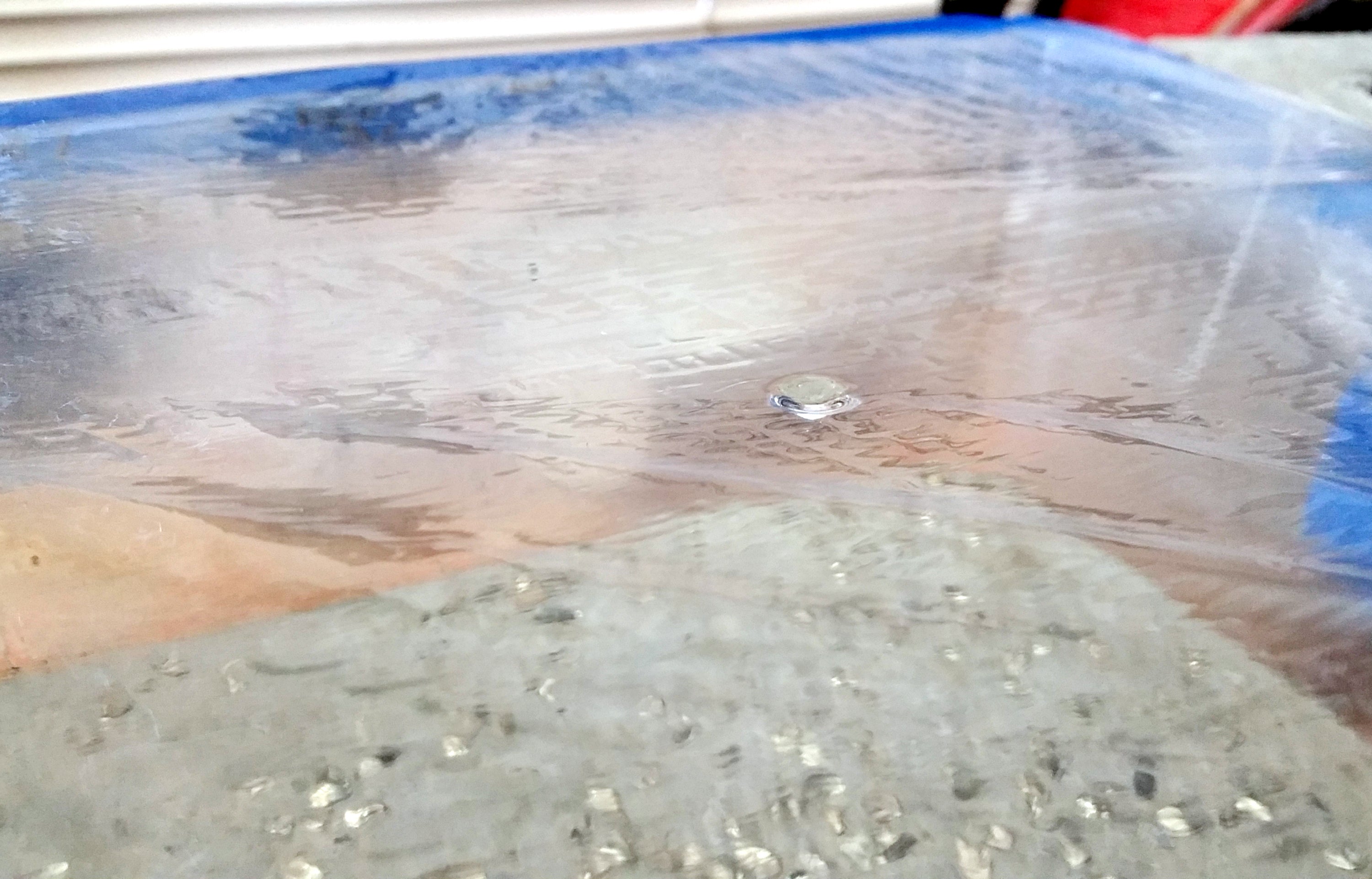 During the curing process, when your mold is covered, you can see condensation forming. Without covering, this moisture would have escaped and not been included in the hydration process weakening the concrete.