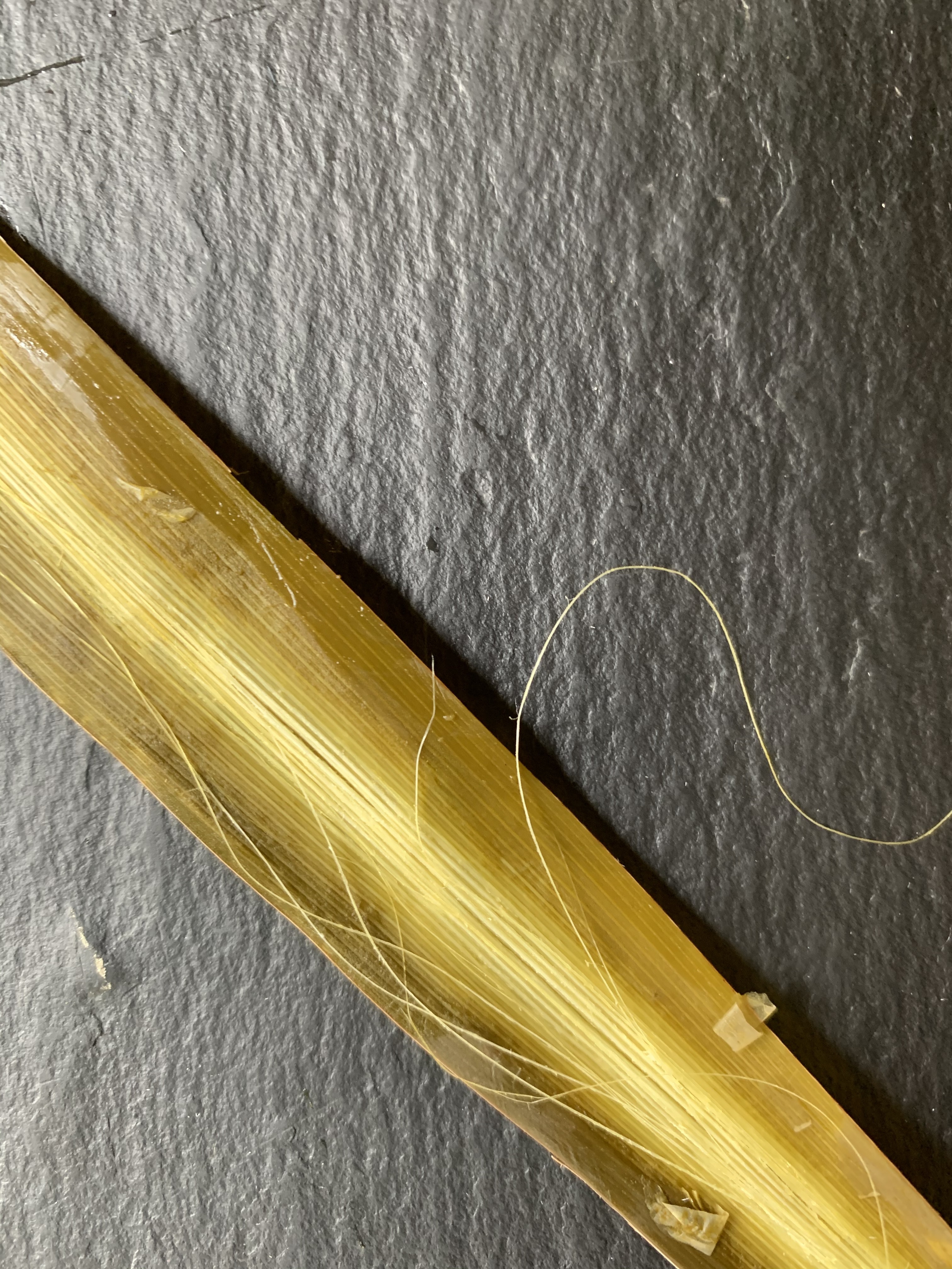 Place your yucca leaves into a large pot, it's okay to bend them while you do this. Fill the pot with enough water to cover all the leaves. With a lid on the pot, bring it to a boil on the stove. Leave the lid on and continue to boil for 35-40 minutes, don't worry you can't really over cook them or under cook them. Leave the pot to come to room temperature, the leaves will continue to soften as the pot cools down. Now strain out the leaves and pat them dry will a towel. The leaves are now ready to be converted to string.