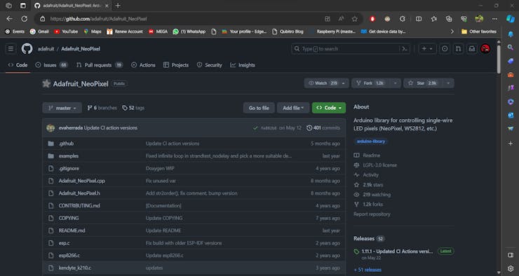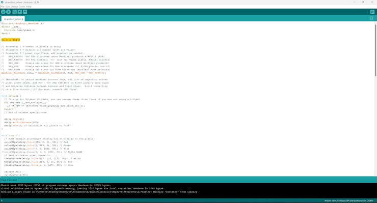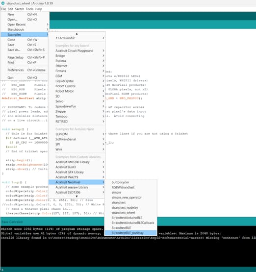 Once the library installation is successful, you can see the neo pixel library examples in the examples sketch.
