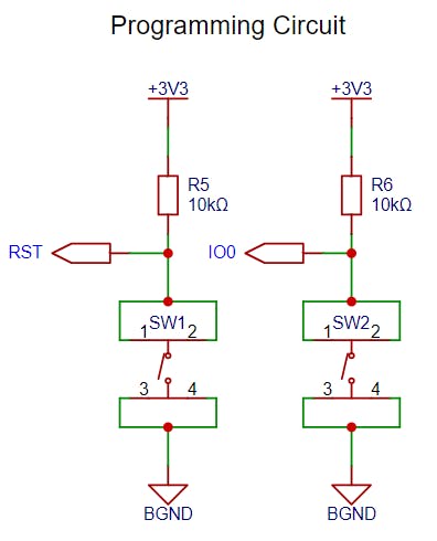 Associated with this circuit, we have the programming mode configuration block, which is made up of two buttons. These two buttons are responsible for putting the ESP8266 into programming mode.
