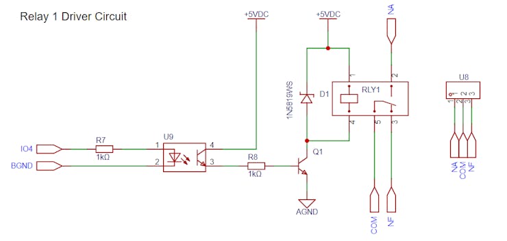 The other way to control the relay is through commands sent via a website. The command will be sent over the internet and will activate the relay. The electronic circuit of the relay is shown below.