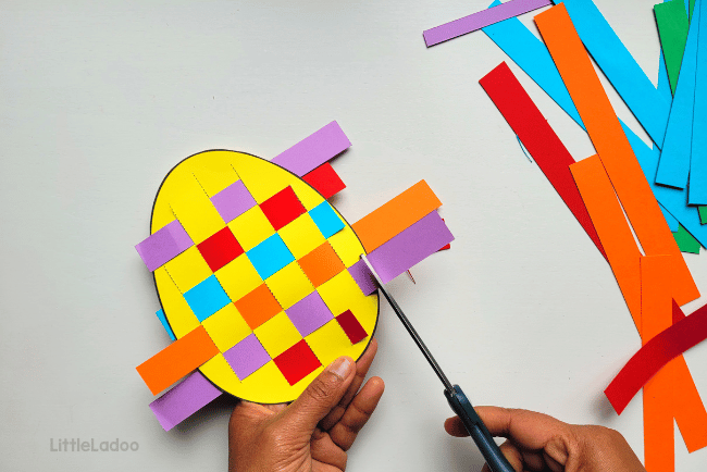 Let's cut out some colourful Strips for weaving the egg.