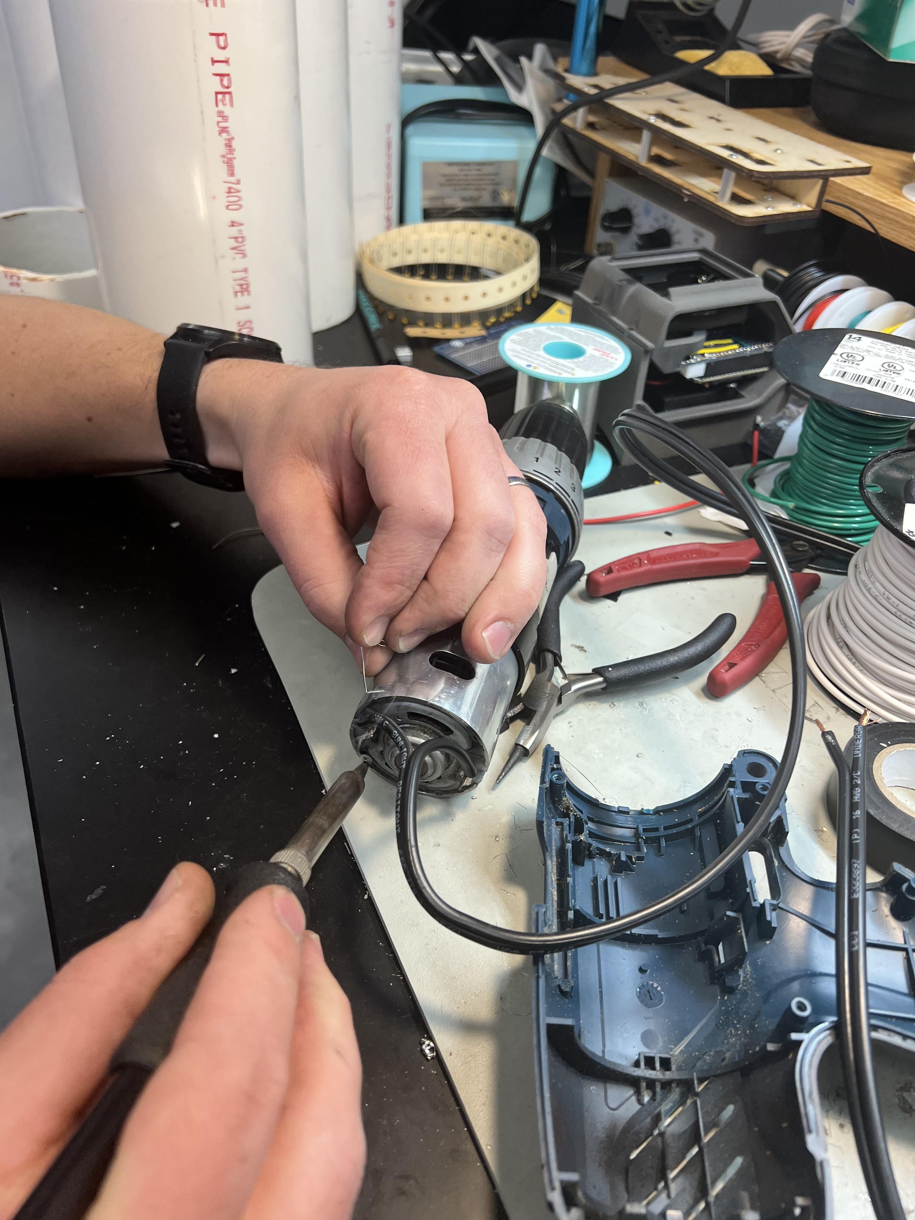 Once the solder has solidified, take the screws from step 1 and use the screwdriver to re-screw the plastic casing to the drill.