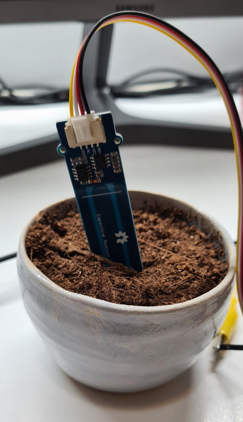 - Connect the moisture sensor to the microcontroller (pin A1).