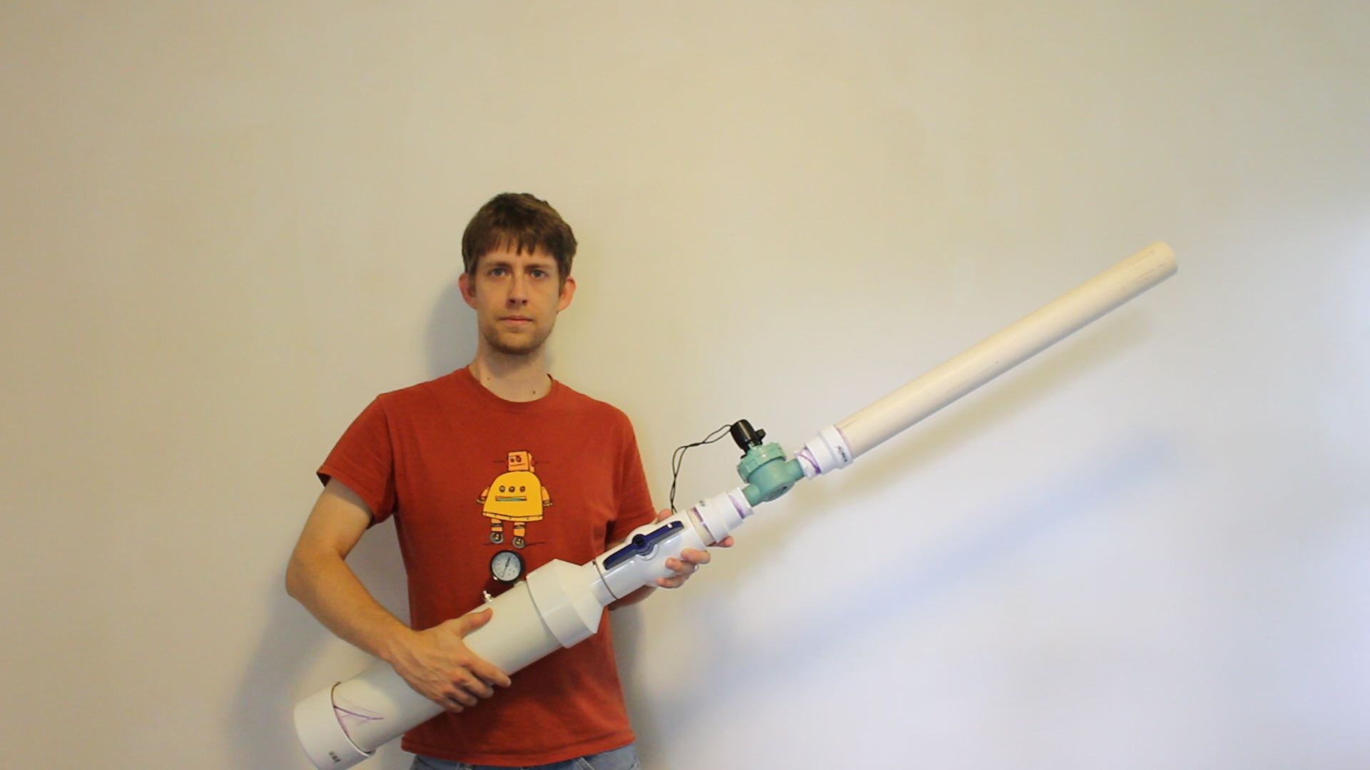 There are a lot of ways that you can make an air cannon. But most of them will follow the same basic design. There is a large air chamber that holds the compressed air. There is a valve that opens to release the compressed air. Then there is a barrel that contains the projectile. An air valve is mounted to the side of the air chamber so that you can easily attach the pump. It is also common to mount a pressure gauge on the side of the air chamber so that you can monitor the internal pressure. However, if your pump has a built-in pressure gauge, you can leave this off. Most air cannons will follow this basic design whether they are firing t-shirts, potatoes or confetti.
