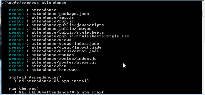 6. Create an express project named as attendance by following command