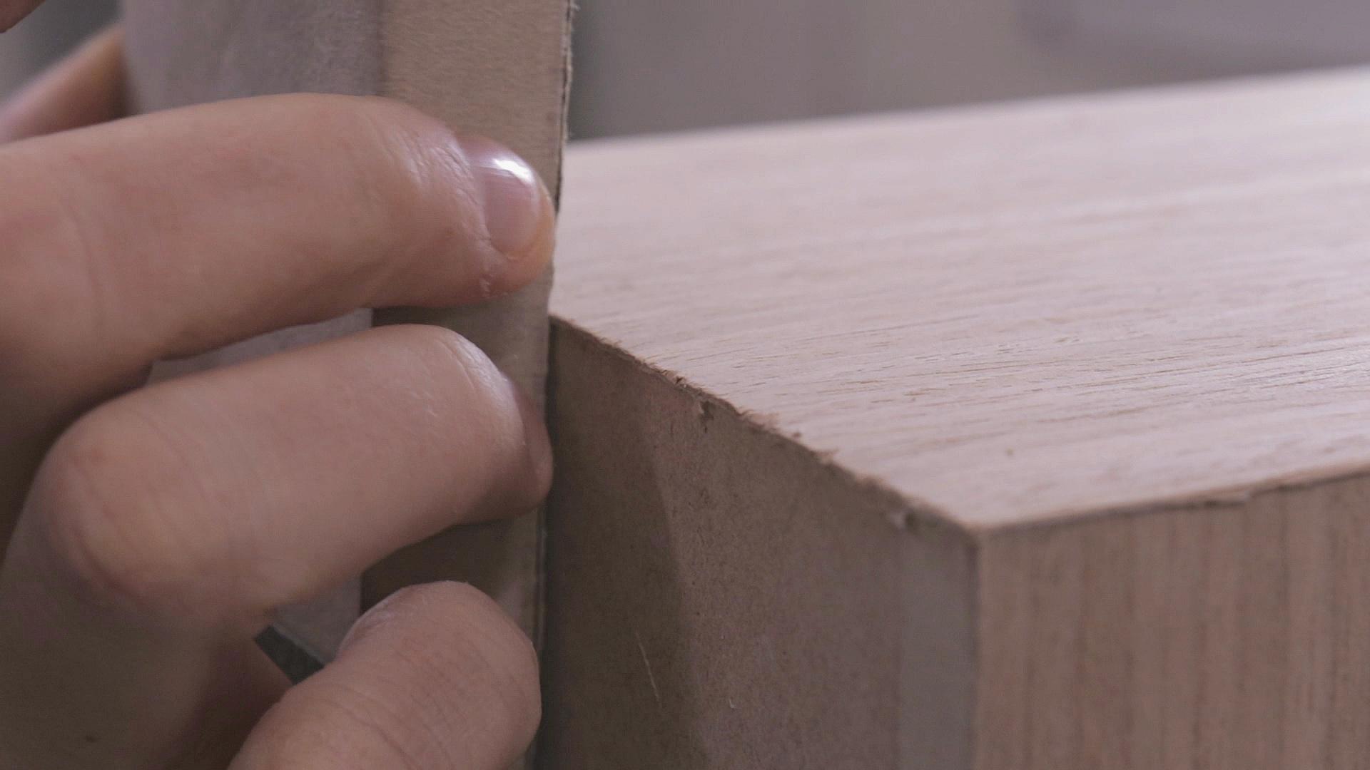 Once I had the veneer applied to all sides of the enclosure, I marked the location of the amplifier location and using a forstner bit, drilled out a hole in each side of the rectangle.