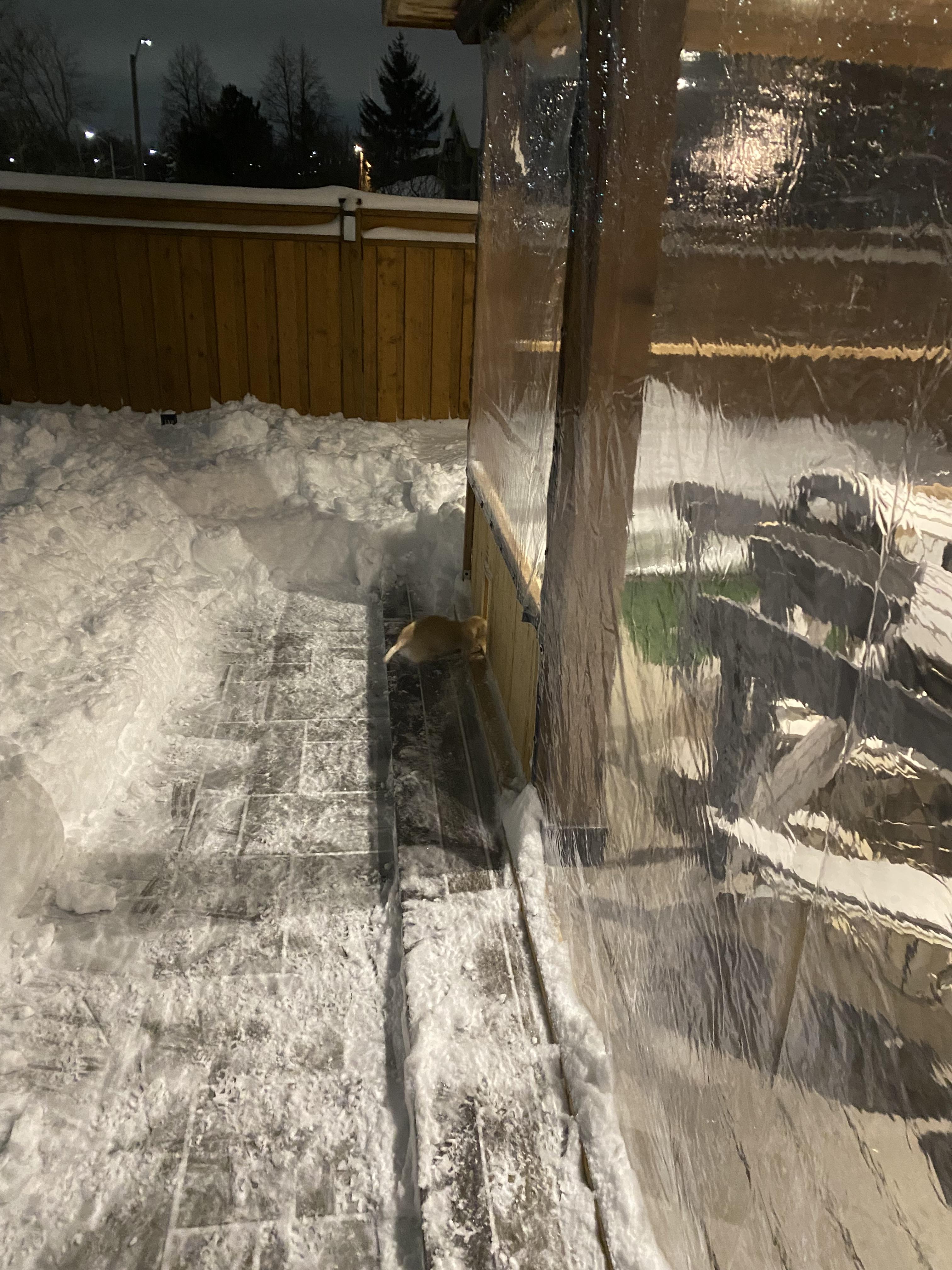 We had a one day record snowfall in January 2022 in the Toronto area. All my yard furniture in nice and dry in the winterized enclosure, and the puppies have been making use of the artificial grass.